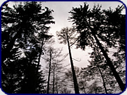 Většina cesty ale vedla po lesních cestách. Na vrcholu Krásné hory jsme poobjedvali v blízkosti rozvalin nějaké stavby - odtud bohužel žádnou pořádnou fotografii nemám. Ale zajímavostí k fotografování bylo cestou docela dost. Na jednom místě mě zaujal kontrast tmavých, téměř černých, stromů a světle šedého zimního nebe. Z pokusů o jeho zachycení vznikla tato fotografie.