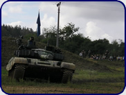 Třetí a poslední fotografie z letošního "Tankového dne". Je na ní zachycen tank, který používá v současnosti naše armáda - modernizovaný T-72. Vojáci se jízdou viditelně dobře bavili a předváděli co se jen dalo - byla to bezkonkurenčně nejlepší úkázka z celého dne.